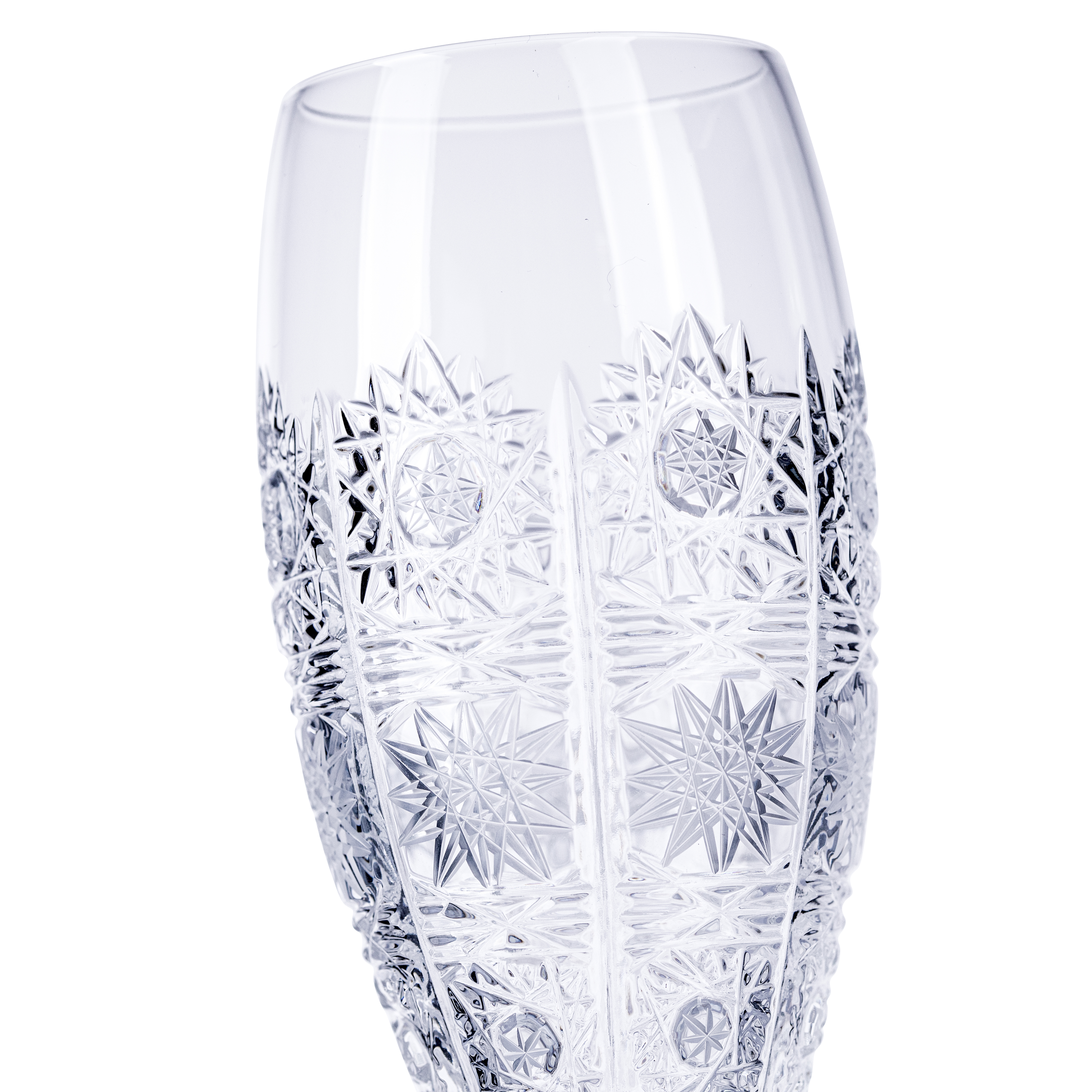 Das Glas zeichnet sich dadurch aus, dass es einen Bleianteil von mindestens 24% enthält. Der hohe Bleianteil in Kombination mit der besonderen Schliffart sorgt für eine besondere Brillanz und macht das Glas, egal ob mit oder ohne Füllung, zu einem ganz besonderen Blickfang.